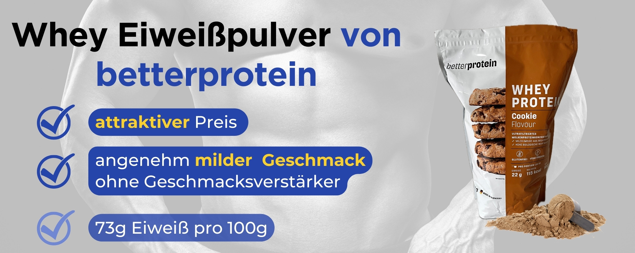 Eiweiß Pulver Whey Protein von betterprotein, 1kg, Made in Germany